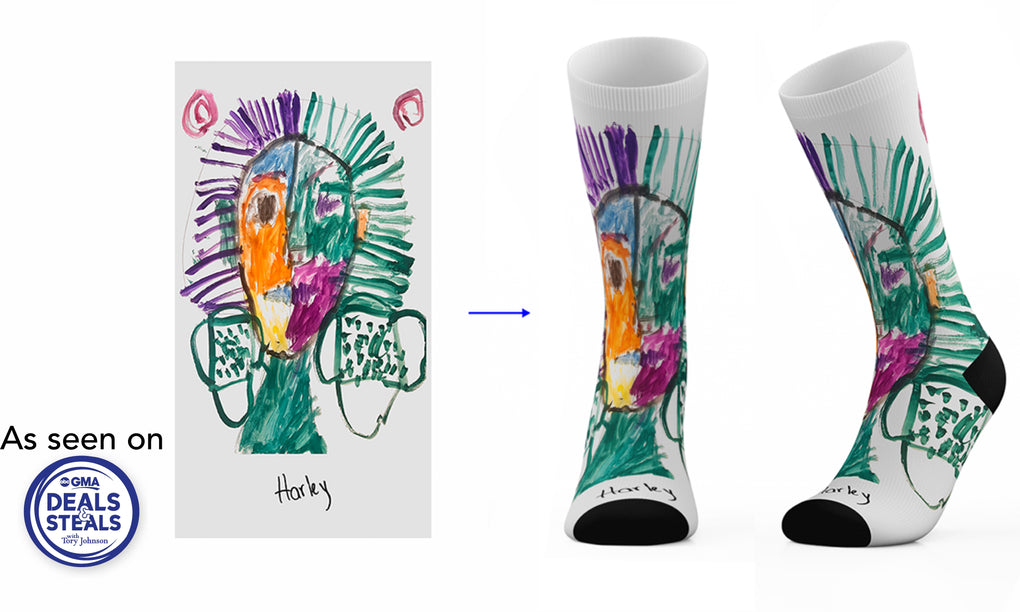 We are pioneering a custom sock printing technology that allows us to digitally print artwork deep into our yarn, without using cheap alternatives like dye sublimation. This enables us to push the limits of design and make premium socks with vibrant full-color artwork that show no matter how much the socks are stretched or worn. All of our inks are water-based and we carefully source every piece of our supply chain to ensure it is gentle on the environment.